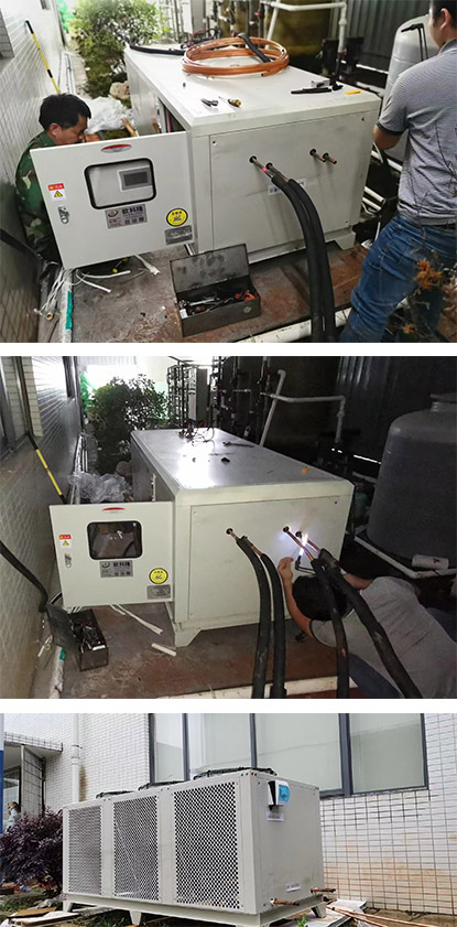 本方案為國內(nèi)某高校實驗室使用的分體式冷水機,為了便于散熱,內(nèi)外機分開放置。我方工程團隊上門安裝調(diào)試,后續(xù)使用過程順暢得到該科研師生團隊一致好評。