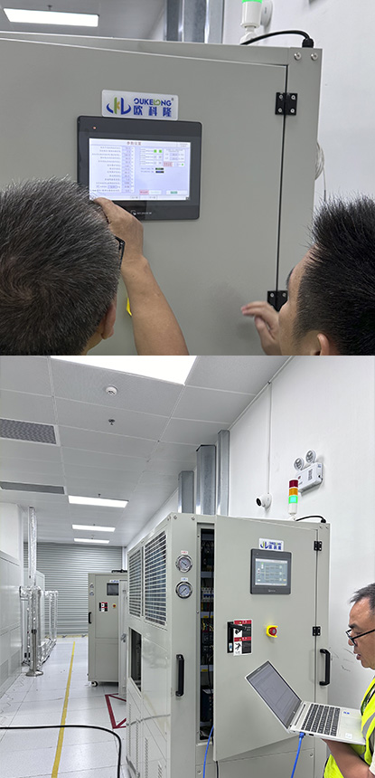 本案例為國(guó)內(nèi)某知名大型芯片企業(yè)采購(gòu)的高低溫測(cè)試用冷水機(jī),小編曾有幸親臨用戶現(xiàn)場(chǎng)目睹偉大的科學(xué)家門(mén)為了打破封鎖日以繼夜發(fā)奮研發(fā)終于在芯片領(lǐng)域終于交出了勝利的答卷,在此向偉大的科研人員致以崇高敬意。